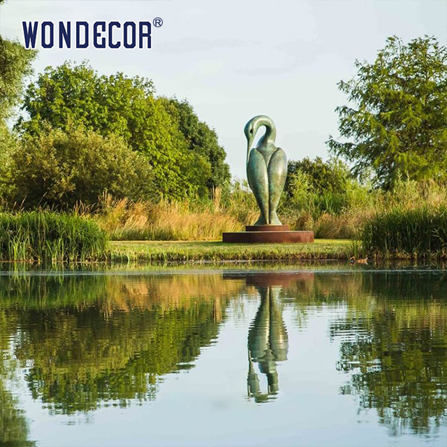 مجسمه های پرنده آب اغلب در دفاتر فروش، حیاط ها، پارک ها و مکان های دیگر برای انتقال یک جو آرام و پویا از طریق حرکات پرنده مانند گسترش بال ها و استراحت استفاده می شود.برای مثال، مجسمه یک طوطی سفید در کنار یک استخر آب ایستاده است، و وقتی باد بر روی سطح آب می وزد، سایه پرنده تکان می خورد، و به نقطه مرکز دید تبدیل می شود.نصب ویژگی آب تعاملی تأثیر بصری و تعامل را از طریق طراحی سوراخ کردن هنر حکاکی محلی افزایش می دهد.